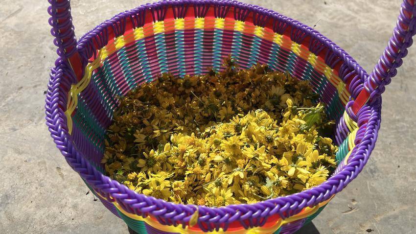 听采花人介绍,这些野生菊花可是“宝贝”,采回家后经清洗、蒸熟,再放在阳光下慢慢晒干,就能制成清香醇厚的菊花茶。