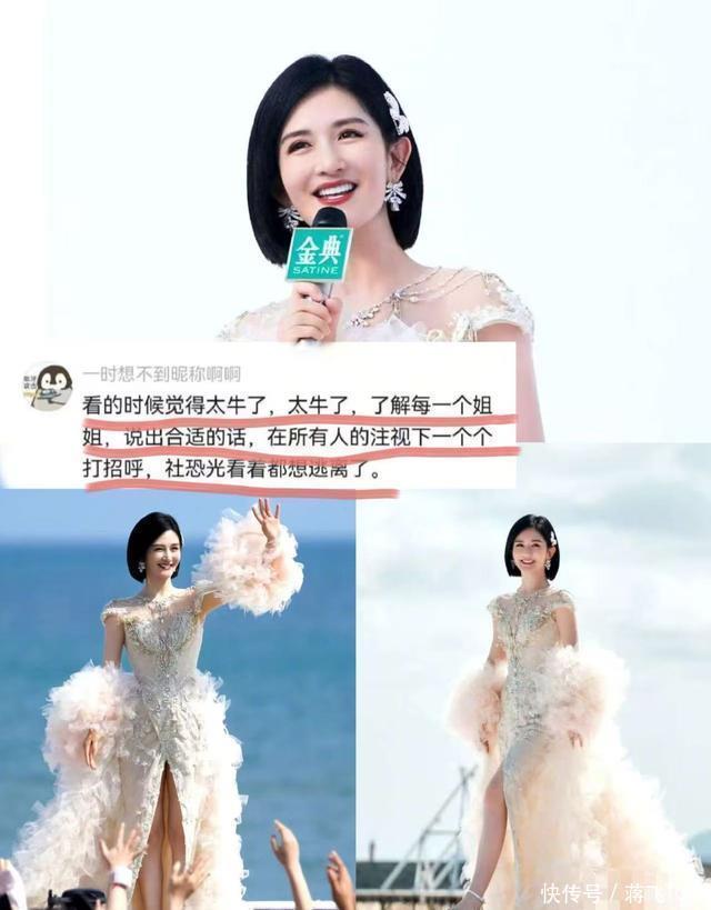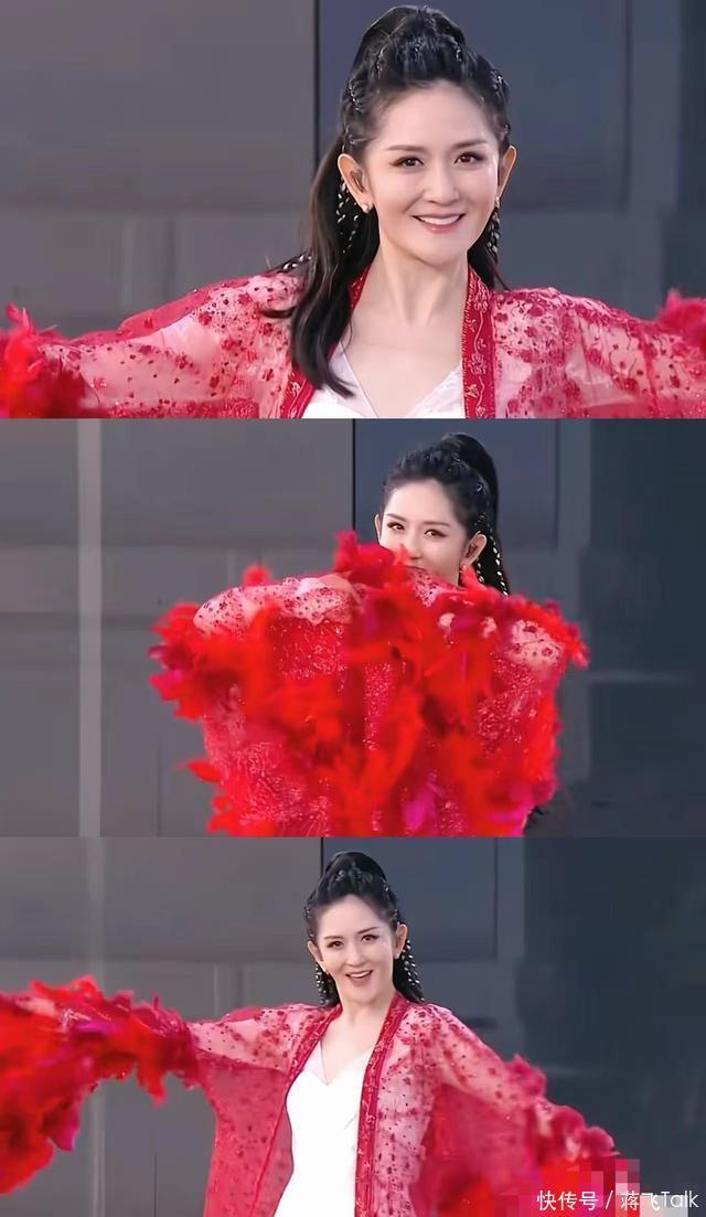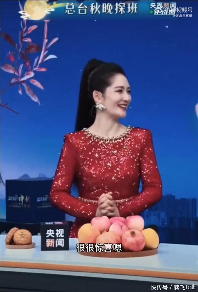 其次,直播中她以红色镶钻礼服搭配利落马尾亮相。 被网友评价"端庄大气,尽显国泰民安脸"。 与任鲁豫搭档主持游船环节时,其沉稳表现与11年前金鹰节的争议形象形成鲜明对比。